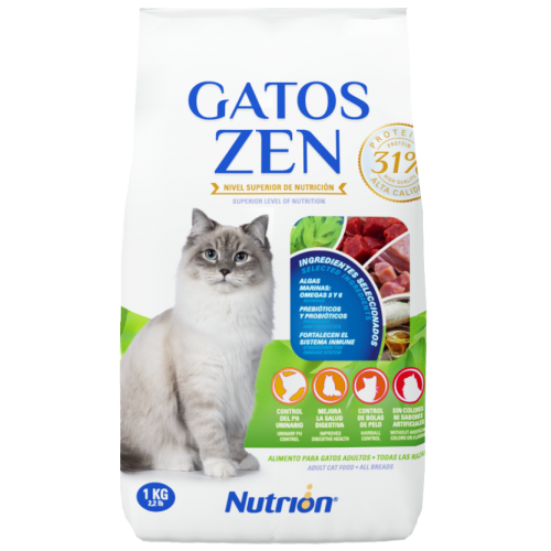 Nutrión Gatos Zen en su presentación de 3 KG, es un alimento high premium especialmente diseñado para gatos adultos de todas las razas, con una fórmula exclusiva que incluye ingredientes funcionales de alta calidad. Exquisito sabor natural obtenido de carne y pollo de calidad superior.